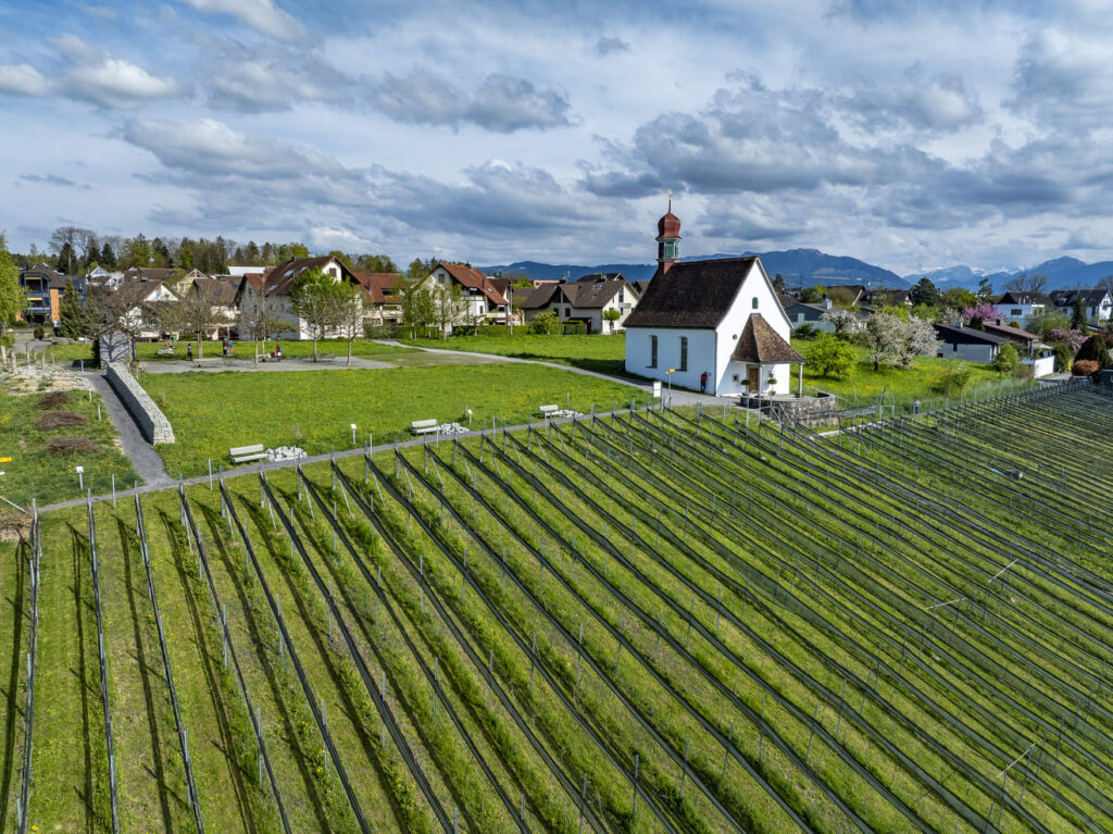 Mit dem Einzug der neuen PIWI Sorten kamen auch Asthaufen, offene Bodenstellen, Blühstreifen und einzelne einheimische Wildsträucher zu uns in den Rebberg. Igel, Wildbienen und Vögel erfreuen sich an den neuen Strukturen, die ihnen Lebensraum und Nahrung bieten. Zusammen mit dem angrenzenden Umweltlehrgarten auf der Weinrebenwiese wird die Biodiversität von Hünenberg gefördert. So leben beispielsweise seltene Wildbienenarten rund um die Weinrebenkapelle.